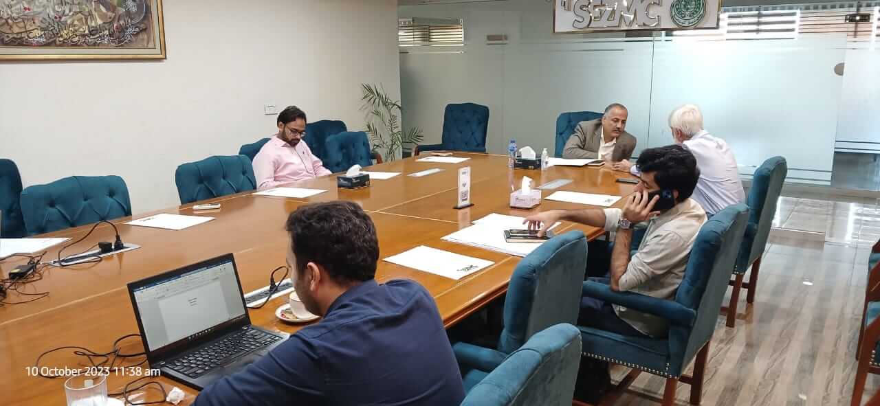10th October 2023 : Had a progress review meeting with ZKBDMC, discussing the progress at Dhabeji Special Economic Zone held at SEZMC Commitee room. 10th October 2023 : Had a progress review meeting with ZKBDMC, discussing the progress at Dhabeji Special Economic Zone held at SEZMC Commitee room. You Might Also Like A review meeting was held on 18th June 2025 with consortium members Haidermota & Co., Exponent Engineering, and A.F Ferguson & Co., Chartered Accountants to discuss the progress of new industrial enclaves in Sindh. June 20, 2025 10th June 2023 : Meeting on groundbreaking of Dhabeji Industrial Zone held in committee room of SEZMC. June 13, 2023 The Weekly Progress Review Meeting assessed progress across SEZMC’s key projects, including #DhabejiSEZ, Khairpur Special Economic Zone. MCK Industrial Park, and AquaPark, emphasizing their combined importance in advancing industrial growth, enhancing infrastructure, and strengthening investor confidence across the region. January 28, 2026