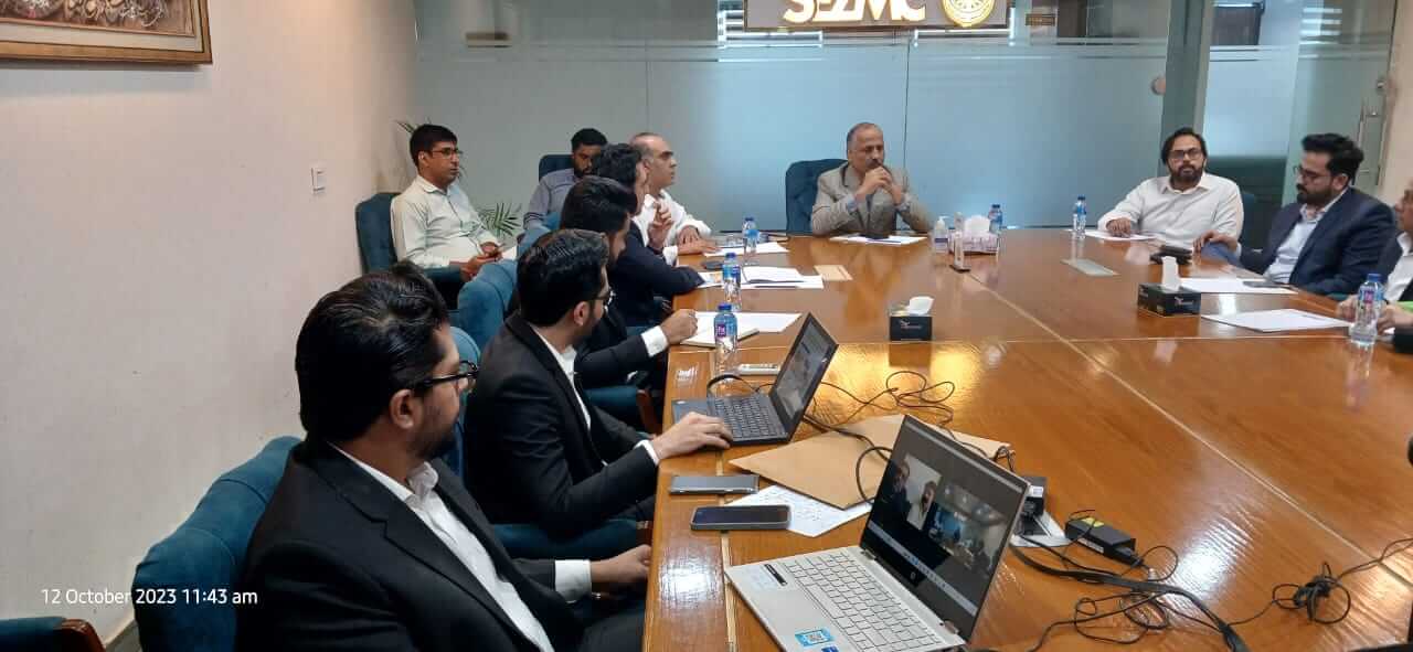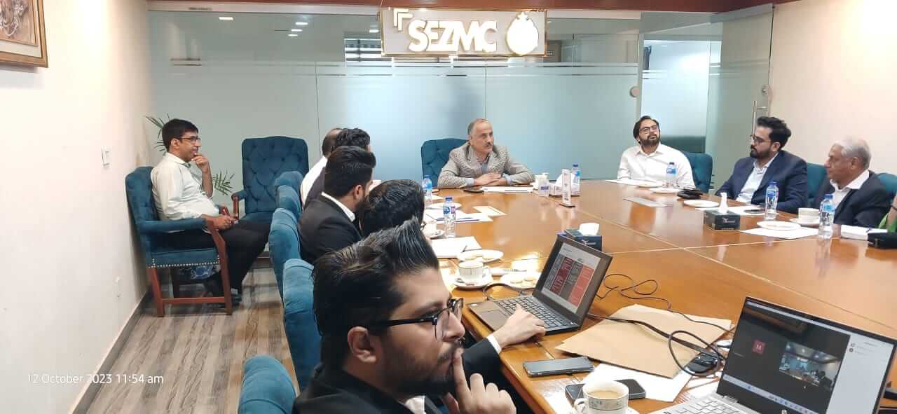 Project wayforward meeting on feasibility & transaction advisory for the development of new industrial enclaves in Hyderabad, Sukkur, SBA was held on 12th October 2023. The meeting was attended by SEZMC, A.F.Ferguson (PWC), Exponent Eng & HaiderMota & Co.