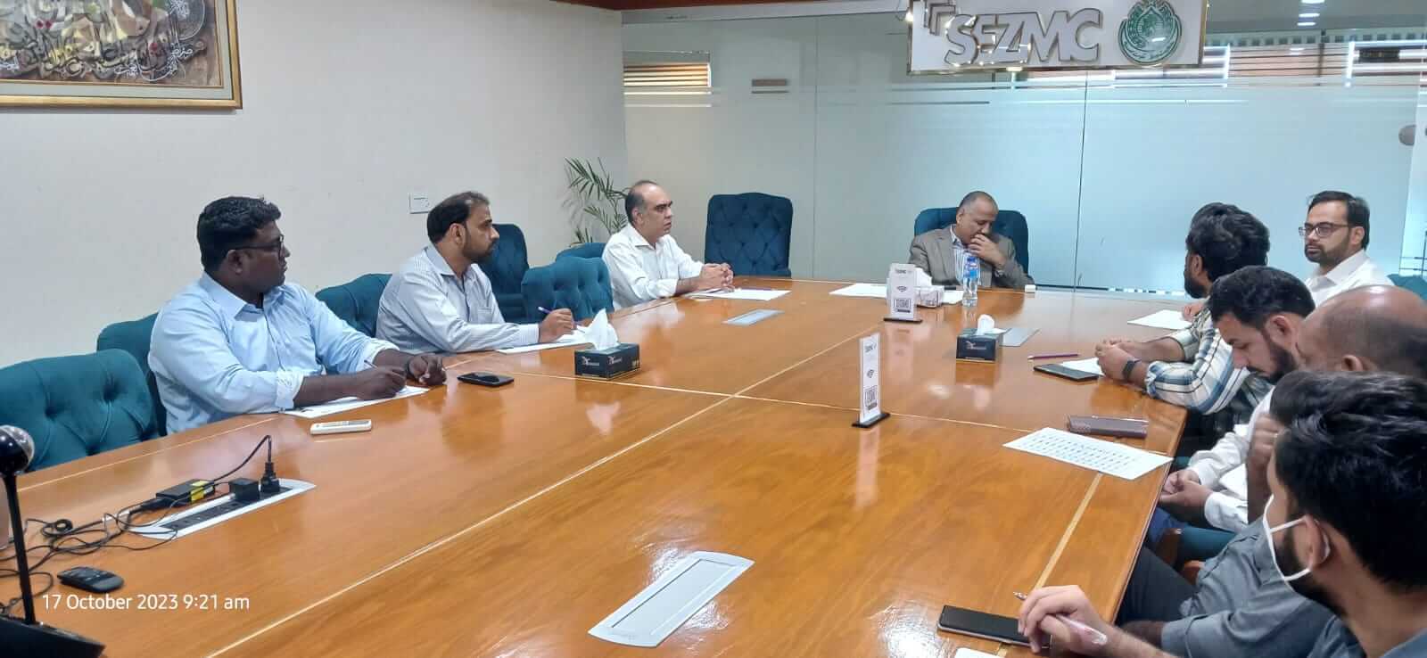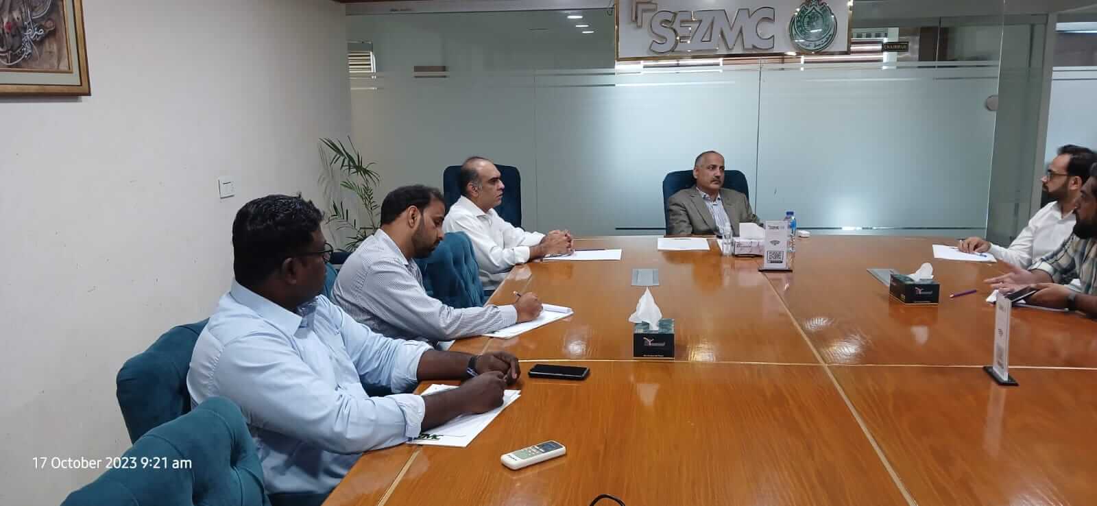 On October 17th, 2023, the CEO chaired the Weekly Progress Review meeting held in the SEZMC Committee room. 17th October 2023 : The CEO chaired the Weekly Progress Review meeting held in the SEZMC Committee room. You Might Also Like Boosting Global Ties! SEZMC welcomes Abu Dhabi Ports delegation, CBRE & KGTL to explore investment opportunities in Sindh. Exciting prospects for strong international partnerships & growth May 5, 2025 Progress Review Meeting of all Projects of SEZMC held on 18th July 2024 chaired by CTO SEZMC, progress discussed about all projects. July 19, 2024 A Weekly Progress Review Meeting evaluated progress on the 10 MGD Water Supply Project at Dhabeji SEZ, reinforcing efforts to ensure reliable water infrastructure for industrial operations. February 25, 2026