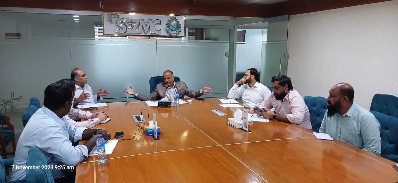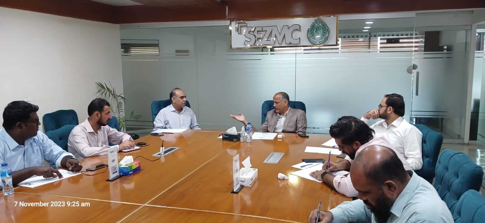 Providing an enabling environment for businesses is essential for Industrial growth. CEO, SEZMC while chairing the weekly progress review meeting Providing an enabling environment for businesses is essential for Industrial growth. CEO, SEZMC while chairing the weekly progress review meeting highlighted the importance of building an ecosystem which supports investors. You Might Also Like Development of Dhabeji SEZ- Most Viable and Connected CPEC SEZ on Track June 19, 2020 Progress Review Meeting of New Industrial Enclaves in Hyderabad, Sukkur and SBA was held on 09th April 2025. The meeting attended by consortium members Haidermota & CO, Exponent Eng and A.F Ferguson & Co., Chartered Accountants April 10, 2025 A project review meeting and site visit for the provision of 10 MGD water at the doorstep of Dhabeji SEZ were held on 4th September 2025. The contractor provided updates on the construction progress. September 8, 2025
