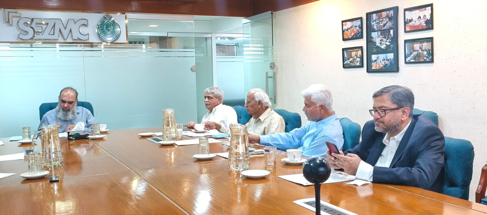 A Progress Review Meeting was convened to assess the near-completion phase of the 10 MGD Water Supply Project for Dhabeji SEZ. You Might Also Like Highlights from the World FZO Congress 2024. SEZMC is participating as a registered member. Full of productive events across both the Leadership Development and World Congress Programmes September 26, 2024 May 21st, 2024, CTO, SEZMC chaired a progress review meeting for the Dhabeji Special Economic Zone – DSEZ. The meeting included representatives from the developer ZKBDMC, A.F Ferguson & Co., Chartered Accountants and engineering firms IE EA Engg. May 24, 2024 On 5th December 2023, The CEO led the Weekly Progress Review meeting in the SEZMC Committee room, highlighting the pivotal role of special economic zones in advancing Pakistan’s economic well-being. December 5, 2023