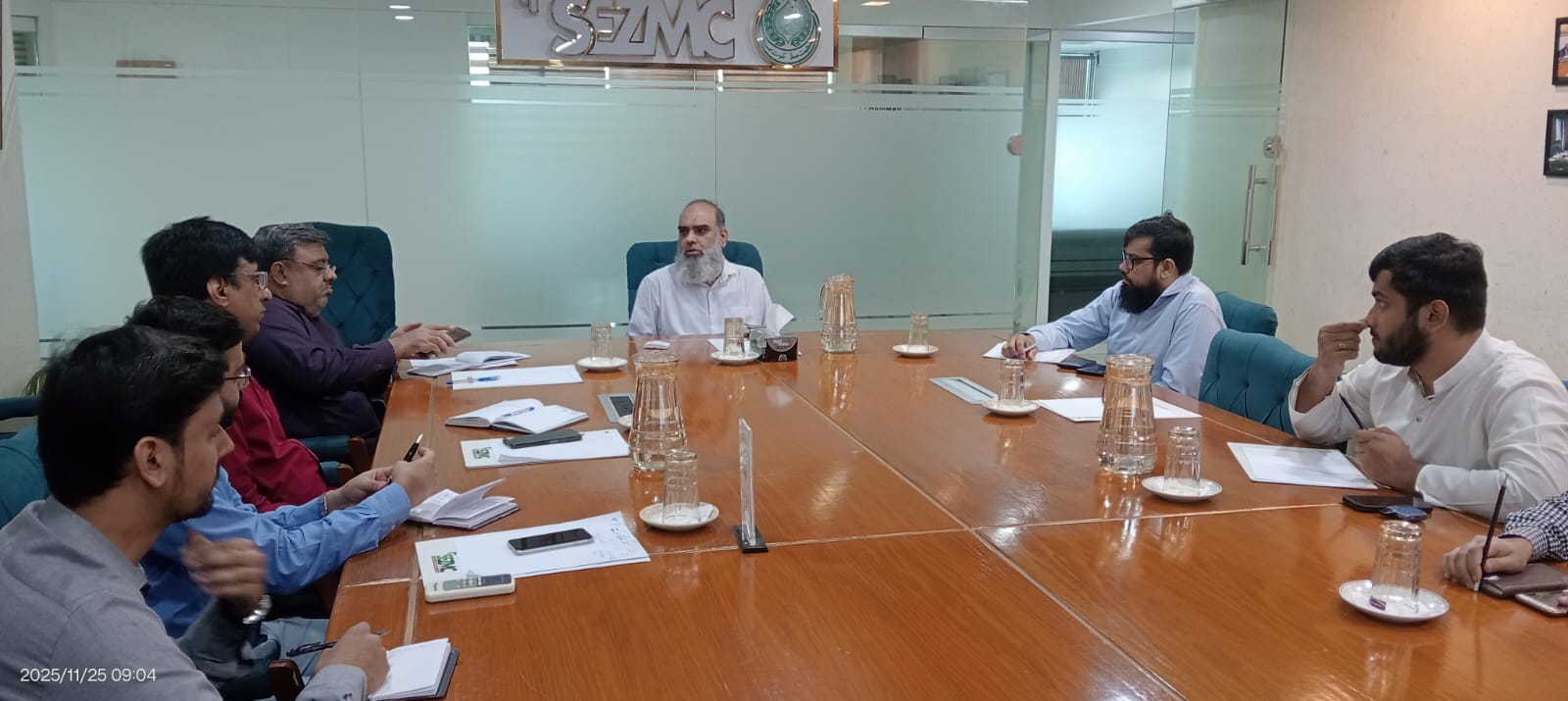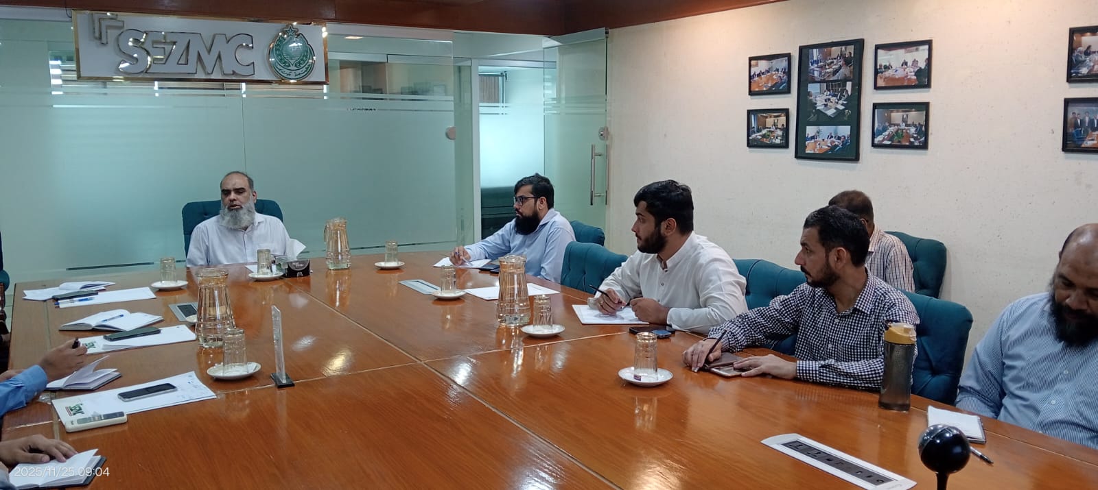 A Weekly Progress Review Meeting was held today, centered on accelerating the development of SEZMC’s major initiatives Dhabeji SEZ, Khairpur SEZ, MCK Industrial Park, AquaPark, and upcoming industrial enclaves. You Might Also Like Industrial/ Economic Zones with uninterrupted utilities can provide the required impetus to economic revival of Pakistan. In this regard Progress Review Meeting of all Projects of SEZMC held on 3rd September 2024 chaired by CEO SEZMC, progress discussed about all projects. September 4, 2024 Meeting with EY, HMCO, Exponent, consultants on Khairpur SEZ January 24, 2023 Progress Review Meetings was held today. During the meeting, progress on all projects was discussed and reviewed. April 24, 2025