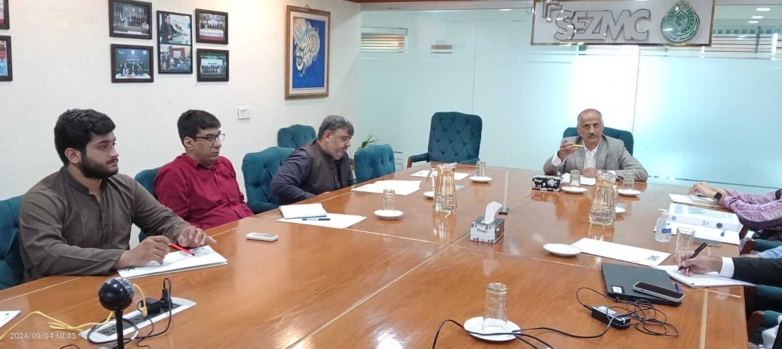 April 24th, 2024, CTO, SEZMC chaired a progress review meeting for the Dhabeji Special Economic Zone (DSEZ). The meeting included representatives from the developer ZKBDMC, A.F. Ferguson & Co. (Chartered Accountants), and engineering firms IE EA Engg April 25, 2024