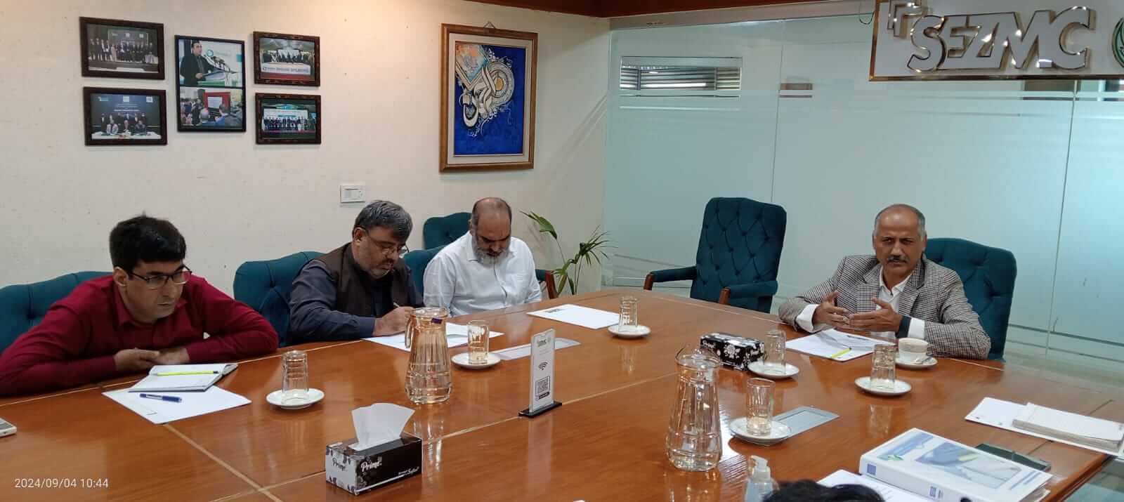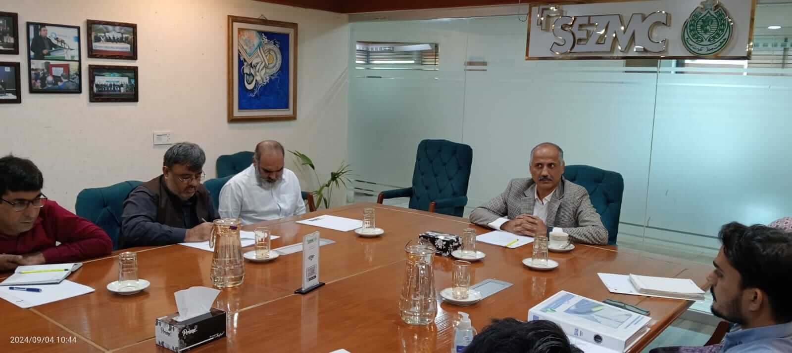 Progress review meeting held on 4th September 2024 for New Industrial Enclaves in Hyderabad, Sukkur and SBA was chaired by the CEO SEZMC and was attended by consortium members Exponent Engg, HMCO and A.F Ferguson & Co., Chartered Accountants You Might Also Like Progress Review Meetings of Dhabeji Special Economic Zone – DSEZ was held today. The meeting attended by ZKBDMC , IA A.F Ferguson & Co., Chartered Accountants and IE EA engineering firm. April 16, 2025 A review meeting was held on 29th May 2025 to assess progress on the provision of 10 MGD water to Dhabeji SEZ. The contractor shared construction updates and timelines. May 30, 2025 April 24th, 2024, CTO, SEZMC chaired a progress review meeting for the Dhabeji Special Economic Zone (DSEZ). The meeting included representatives from the developer ZKBDMC, A.F. Ferguson & Co. (Chartered Accountants), and engineering firms IE EA Engg April 25, 2024
