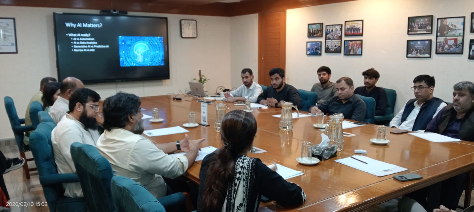 The session, led by Dr. Raazia Sosan Waseem, Assistant Professor & Head of the Software Engineering Department at DHA Suffa University, provided strategic insights into the role of Artificial Intelligence in enhancing industrial productivity, economic planning, governance efficiency, and sectoral growth.